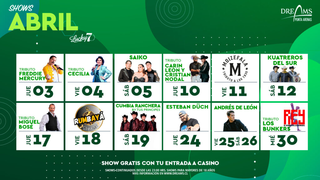 Uncategorized ¡Abril llega con la emoción de vivir shows imperdibles! marzo 31, 2025 Descubre nuestra cartelera de shows y prepárate para disfrutar de momentos inolvidables Abril llega cargado de la mejor entretención ¡No te los puedes perder! Facebook Twitter Telegram WhatsApp Artículos Relacionados Las recientes declaraciones desde Argentina deben invitarnos a una reflexión seria 16 de abril de 2026 La Soberanía Chilena en Magallanes no está en discusión 16 de abril de 2026 NATALES SE PREPARA: ¡UNIDOS POR NUESTRA SEGURIDAD! 14 de abril de 2026 Intenciones del Gobierno del Presidente Kast 14 de abril de 2026 Deja una respuesta Cancelar la respuestaTu dirección de correo electrónico no será publicada. Los campos obligatorios están marcados con *Comentario * Nombre * Correo electrónico * Web Guarda mi nombre, correo electrónico y web en este navegador para la próxima vez que comente.