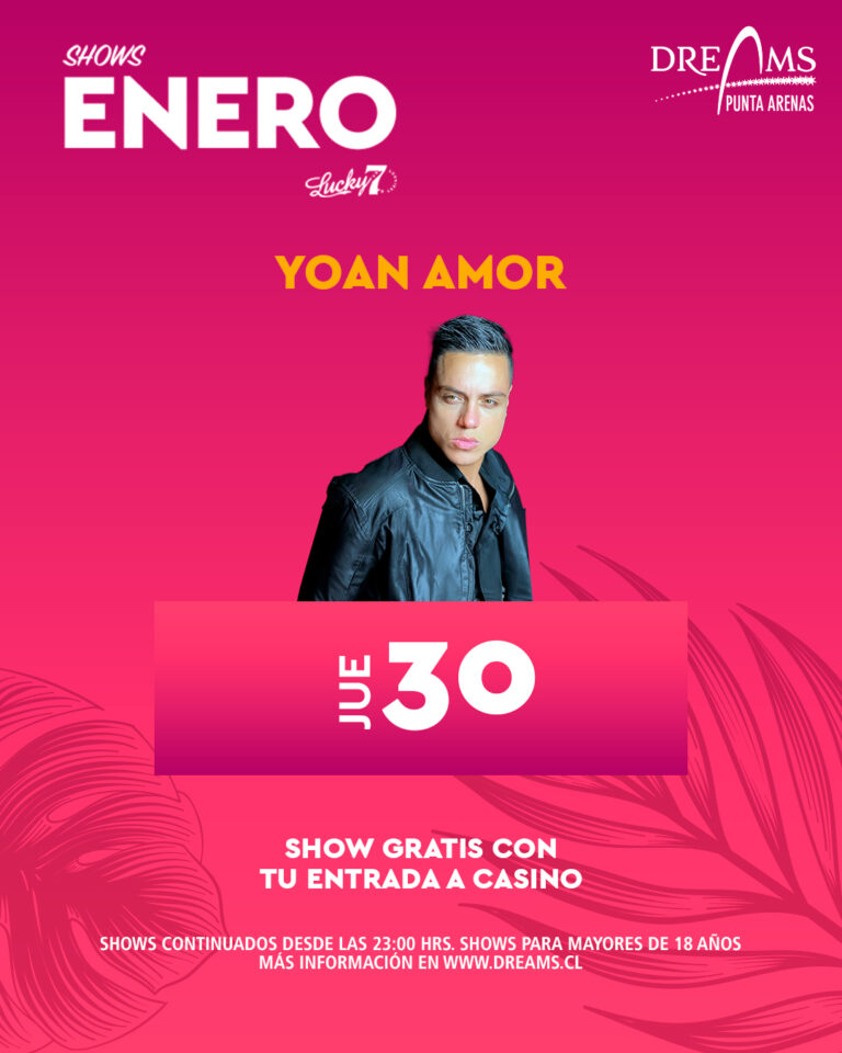 ¡Se viene el jueves 30 y se vive en Dreams Punta Arenas! ven a disfrutar del gran show de Yoan Amor no lo pienses más y dale a tu finde mucha entretención