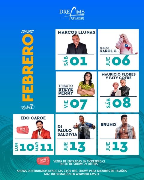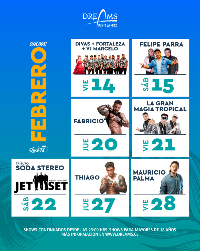 Parrilla artística febrero 2025 en Dreams Punta Arenas