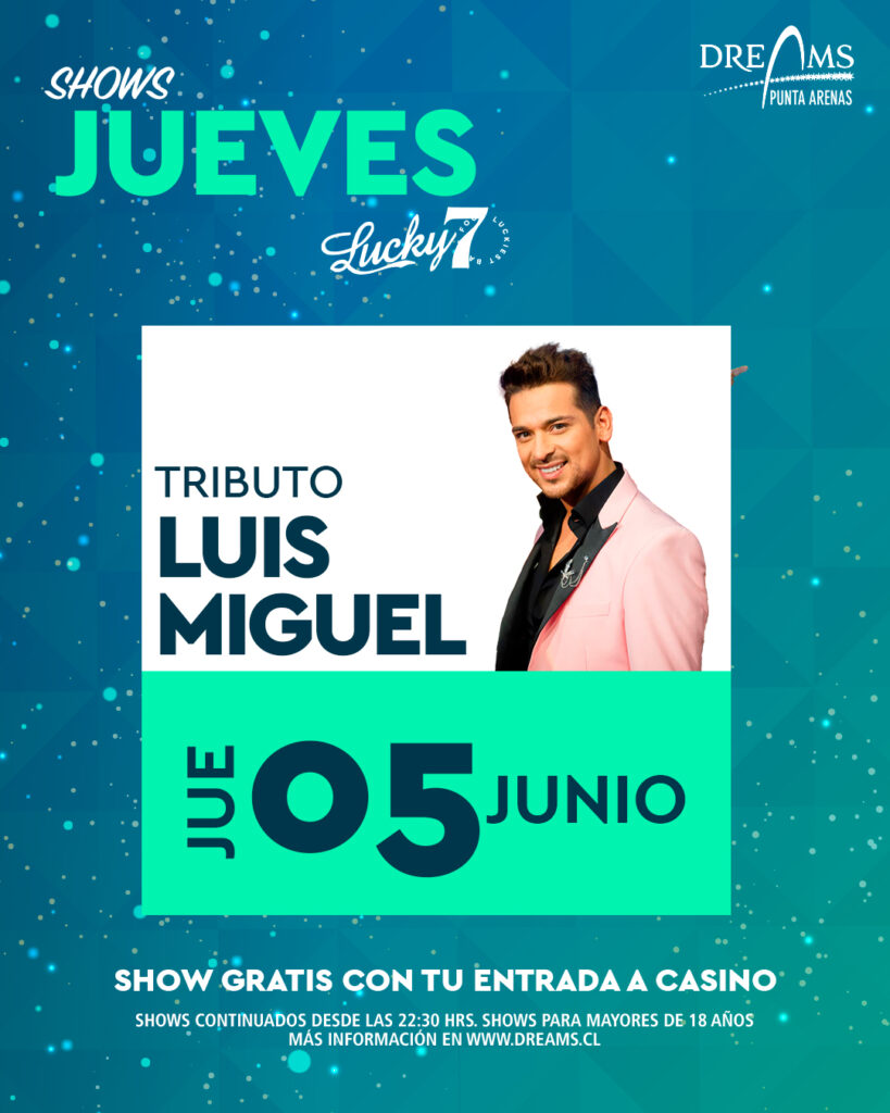 Uncategorized Tributo a luis Miguel en Dreams junio 3, 2025 ¡Los jueves se pasan mejor en Dreams Punta Arenas!Ven y disfruta un show de calidad con un tributo a Luis Miguel. Canta y baila todos sus éxitos el próximo jueves 05 de junio en #Lucky7Show gratis con tu entrada al casino.¡Te esperamos! Facebook Twitter Telegram WhatsApp Artículos Relacionados Las recientes declaraciones desde Argentina deben invitarnos a una reflexión seria 16 de abril de 2026 La Soberanía Chilena en Magallanes no está en discusión 16 de abril de 2026 NATALES SE PREPARA: ¡UNIDOS POR NUESTRA SEGURIDAD! 14 de abril de 2026 Intenciones del Gobierno del Presidente Kast 14 de abril de 2026 Deja una respuesta Cancelar la respuestaTu dirección de correo electrónico no será publicada. Los campos obligatorios están marcados con *Comentario * Nombre * Correo electrónico * Web Guarda mi nombre, correo electrónico y web en este navegador para la próxima vez que comente.