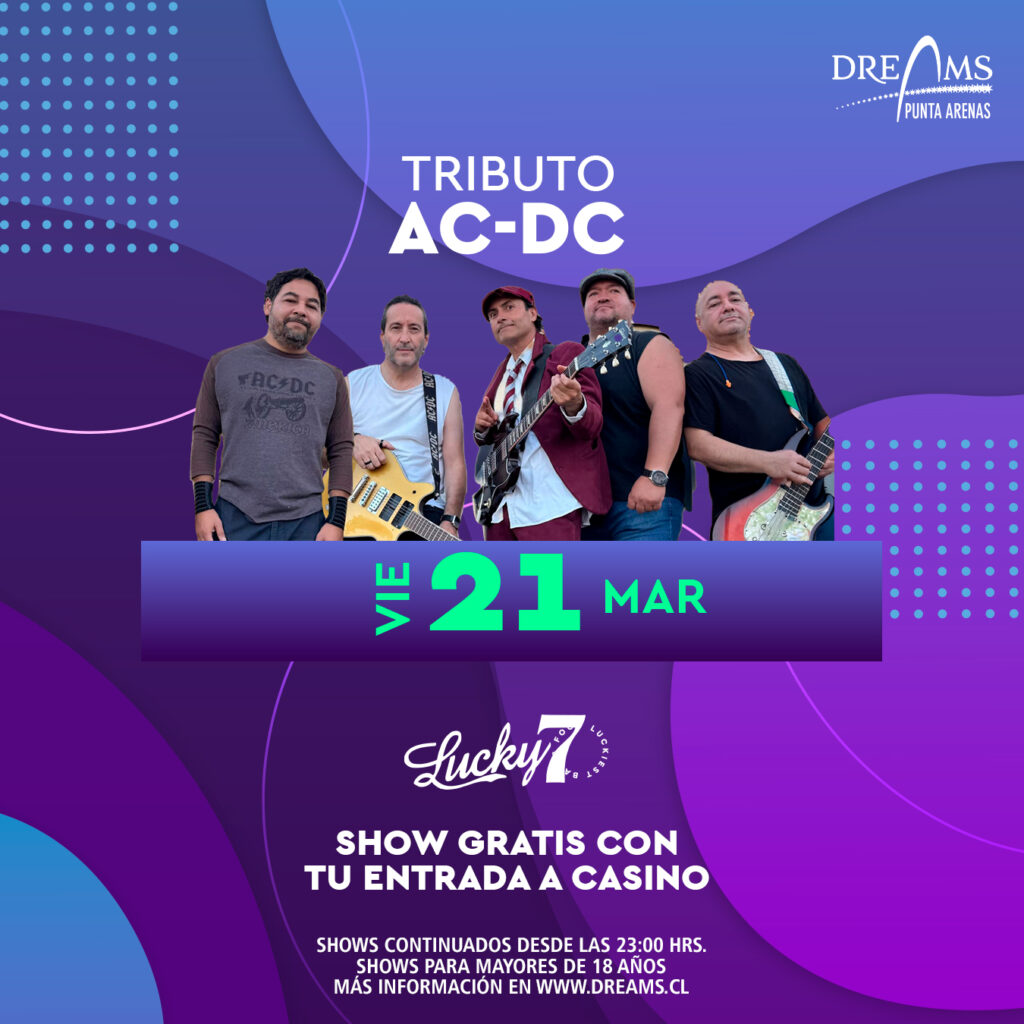 Este próximo viernes 21 de Marzo, te invitamos a disfrutar del gran tributo a AC-DC en Casino Dreams Punta Arenas.
